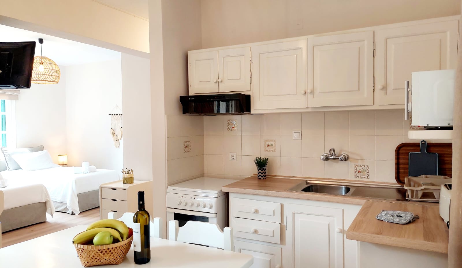 The Studios consist of separate bedroom with either twin or double beds, fully equipped kitchenette / dining area, a bathroom with hot shower and a large private veranda which overlooks the fantastic gardens that are maintained by the owner Yannis Grammatikos.
